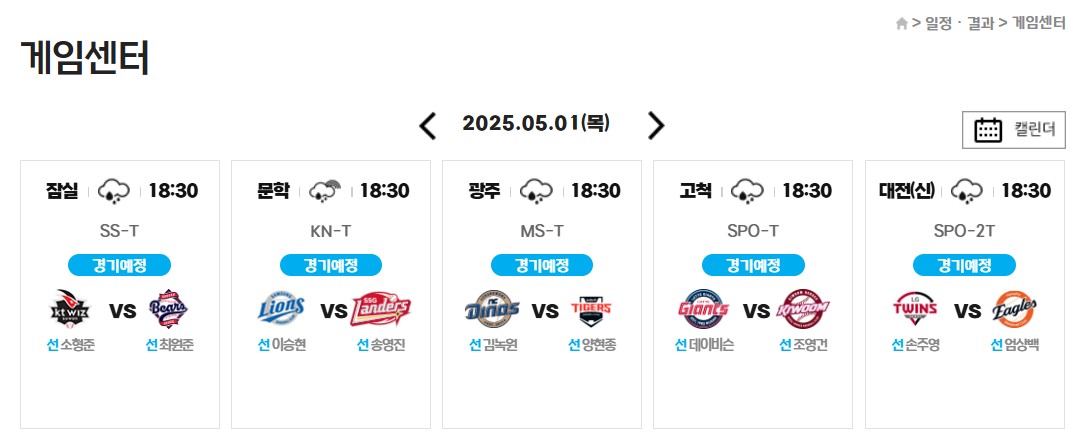 경기 취소가 결정되면 가장 먼저 KBO 홈페이지와 어플을 통해 가장 빠르게 획인 할 수 있다.